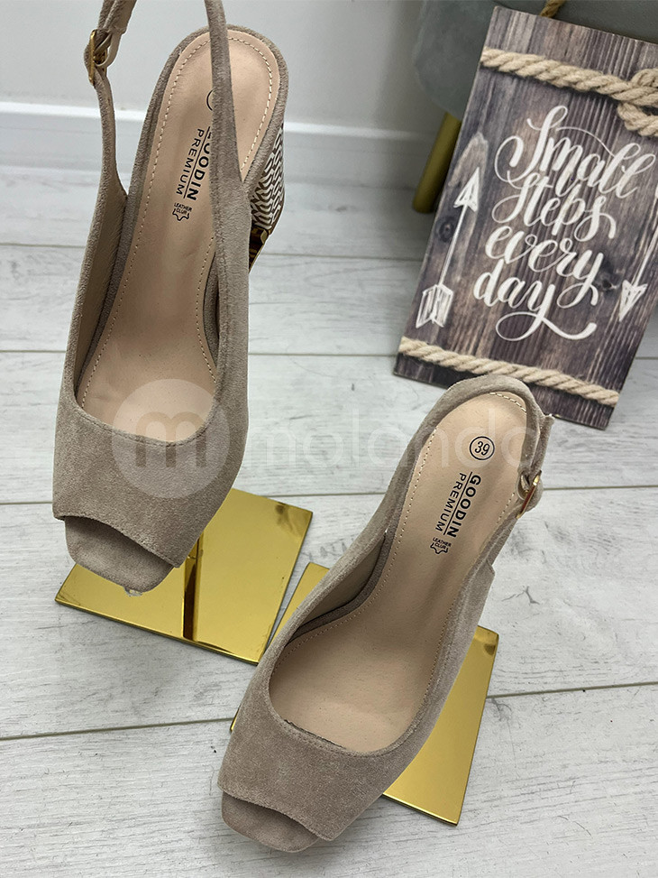 Eleganckie sandały damskie z odkrytym palcem, które łączą klasyczny design z nutą nowoczesności. Wykonane z wysokiej jakości zamszu, posiadają stabilny obcas o geometrycznym wzorze, co nadaje im niepowtarzalnego charakteru. Idealne dopełnienie stylizacji na specjalne okazje, jak i mniej formalne wyjścia. Model dostępny w kilku wariantach kolorystycznych.
